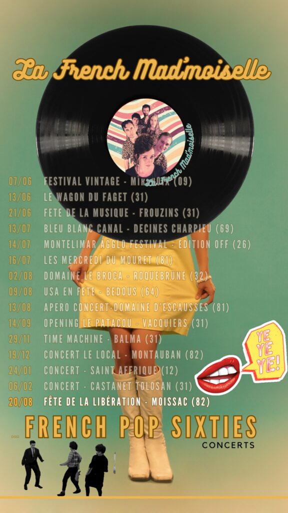 VENDREDI 06/02/2026 – 60 ans MJC – Castanet Tolosan SAMEDI 24/01/2026 – Soirée cabaret – Saint-Affrique SAMEDI 29 Novembre 2025 – Time Machine – Balma DIMANCHE 14 Septembre 2025 – Opening Le Patacou – Vacquiers MERCREDI 13 Août 2025 – Domaine d’escausses – Sainte croix SAMEDI 09 Août 2025 – USA en fête – Bedous SAMEDI 02 Août 2025 – Domaine le Broca – Roquebrune LUNDI 14 JUILLET 2025 – Édition Off Montélimar agglo festival – Marsanne DIMANCHE 13 JUILLET 2025 – Festival Bleu Blanc Canal – Décines Charpieu SAMEDI 21 JUIN 2025 – Fête de la Musique – Frouzins VENDREDI 13 JUIN 2025 – Le wagon du Faget – Le Faget SAMEDI 7 JUIN 2025 – Festival vintage – Mirepoix MERCREDI 6 NOVEMBRE 2024- Agence My French Way of Life – Evènementiel